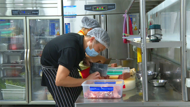 去年,高台县残联依托“爱心屋”助残就业项目在县人民医院打造了恩惠便民餐厅,不仅为患者、医护人员及周边居民提供了便利服务,更为残疾人开辟了就业渠道。走进餐厅后厨,患有强直性脊柱炎的彭建华,正熟练地切着食材。正是这份工作,让他不仅实现了自我价值,更为生活带来了踏实与底气。“薪酬在3000多元,我具体做(食材)切片工作,偶尔在售卖(窗口)帮一下忙,在这里用自己的工作换得了薪酬,领导同事平时都对我帮助很大,让我感觉到了家的温暖。”残疾人彭建华说。