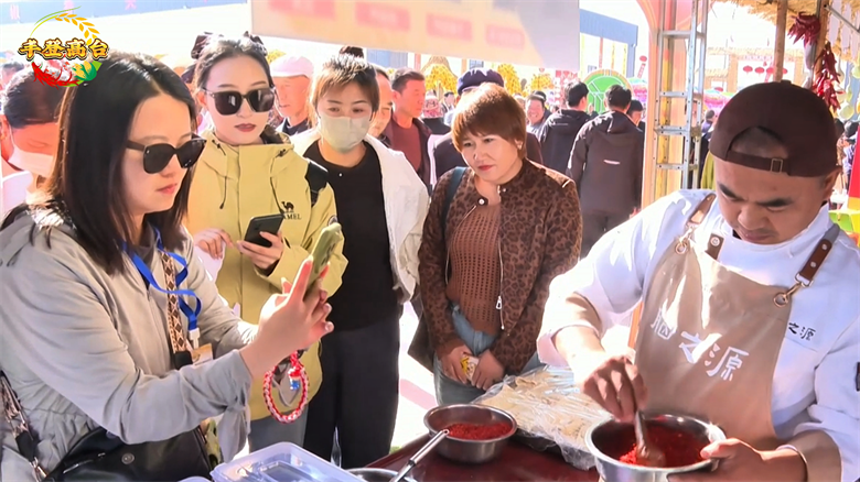 现场,精心布置的美食摊位排列有序,年糕、酿皮、烤肉串等各色美食琳琅满目。更为引人注目的是各镇工作人员利用当地特产现场制作的各类特色佳肴。清蒸大河蟹、铁锅炖大鹅、盐池烧壳子、羊肉串、高台面筋麻辣烫等经典乡土菜、农家菜及特色小吃依次呈现。工作人员调味、翻炒、蒸煮等制作环节清晰可见,充分展示了乡土美食的精湛工艺。活动吸引了众多游客驻足品尝、拍照留念。现场人头攒动,欢声笑语与美食香气交织在一起,构成了一幅生动的丰收欢庆图。“今天来到这里发现好多好吃的,除了各种特色小吃,还有各镇的特色美食都品尝了几款,感觉都特别的好吃。希望能通过这种美食的方式,把我们县上的特产展示给大家,让更多的人了解高台、爱上高台。”市民李梦娇说。