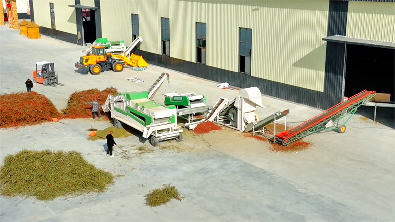 位于高台西部辣椒产业园的一期项目车间内,生产线正全速运转。鲜红的辣椒经过清杂、去把、色选、烘干等多道工序,被加工成各类高附加值产品。“目前车间日加工量在60吨到80吨之间,实现了从原料到成品的全程自动化。”产业园总经理陈四伟介绍。