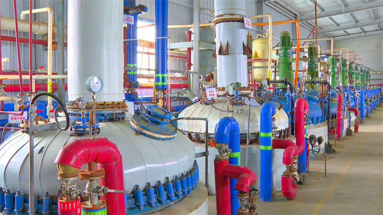 得益于园区完善的配套与服务,甘肃永鸿染化有限公司3条生产线全速运转,其产品远销印度、韩国、日本等市场。公司总经理祁恩东表示,通过自动化改造与设备更新,企业生产效率显著提升,预计今年产值将突破1亿元。