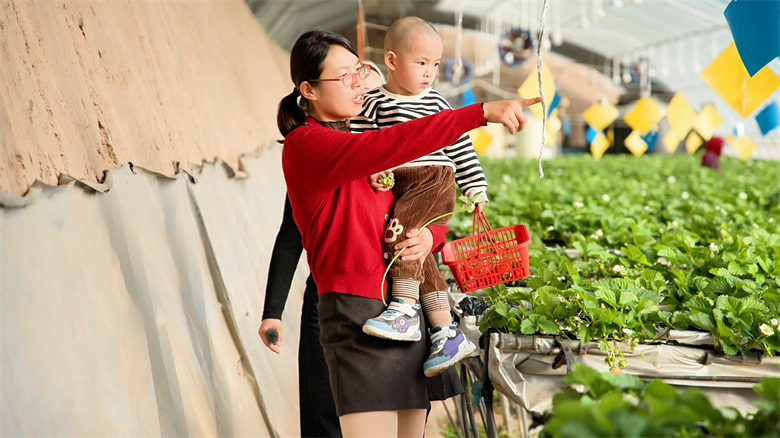 科技赋能之下,合作社的产业规模逐步扩大,目前已形成集种植、冷藏、配送于一体的产业链条,“康翠”牌果蔬更是成功入选“甘味”农产品品牌。时下正值草莓成熟季,棚内鲜红饱满的果实吸引了众多游客前来体验采摘乐趣。“周末和朋友一起来放松一下,这儿的草莓品质很好,带回去家人也称赞。”游客万婷笑着说。