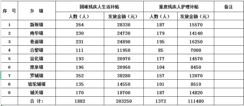 现将2025年高台县残疾人“两项补贴”资金发放汇总表公开如下: