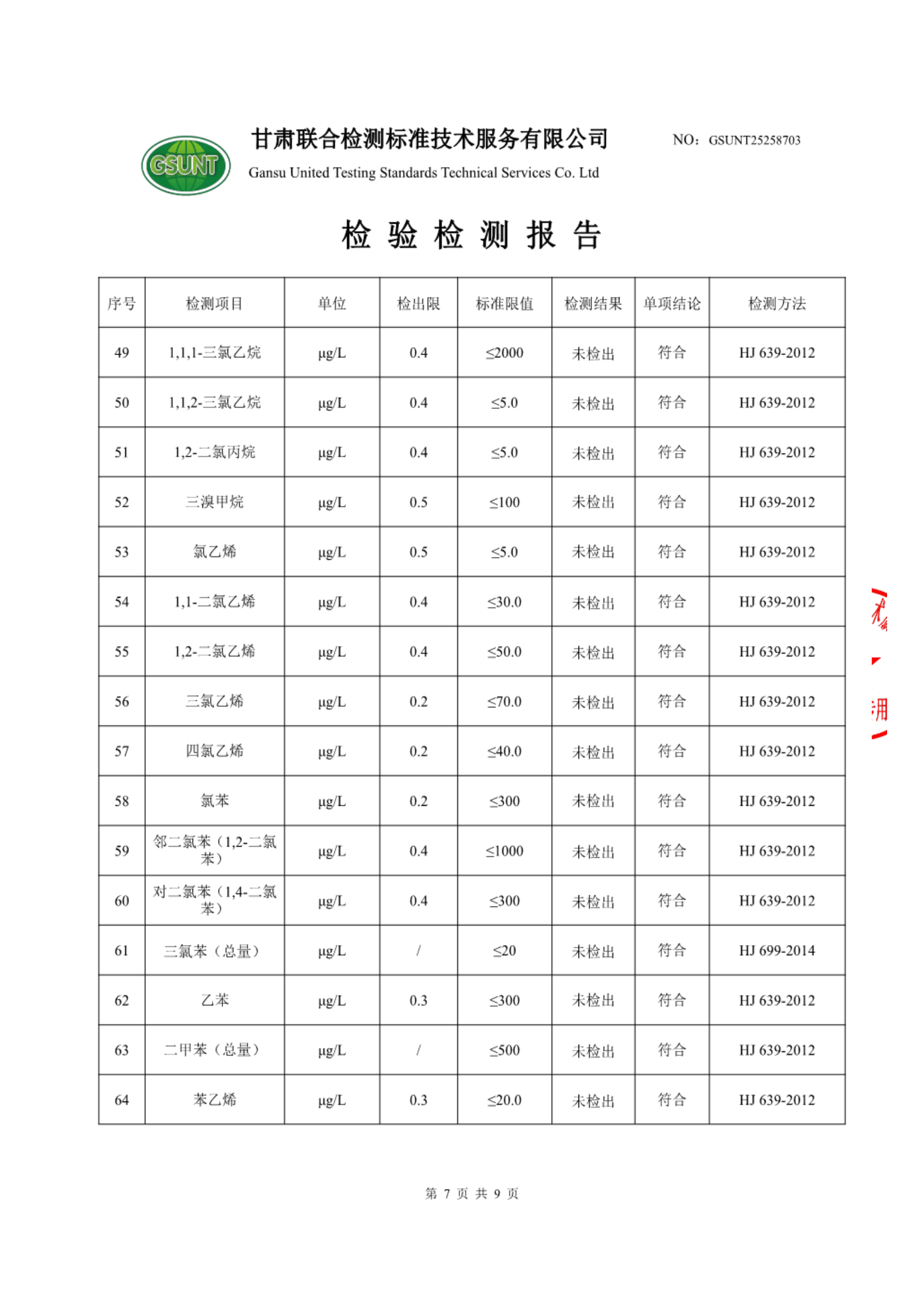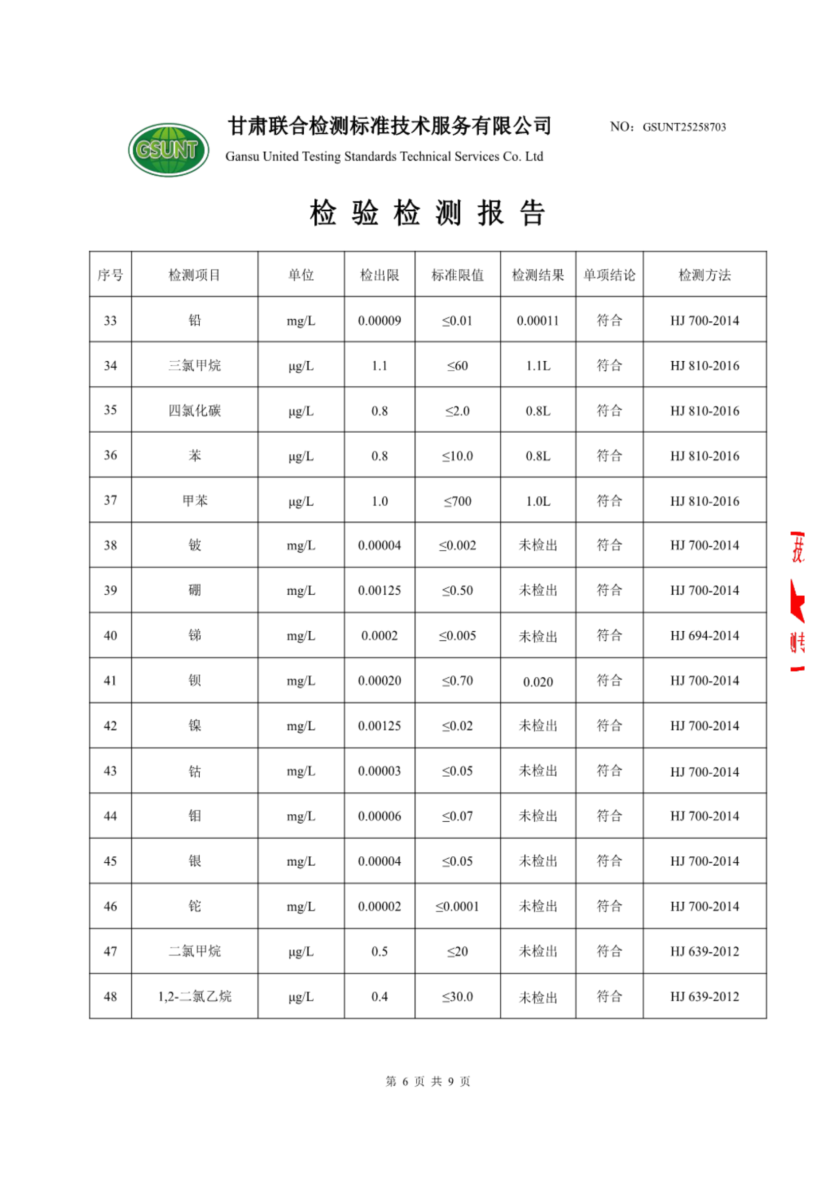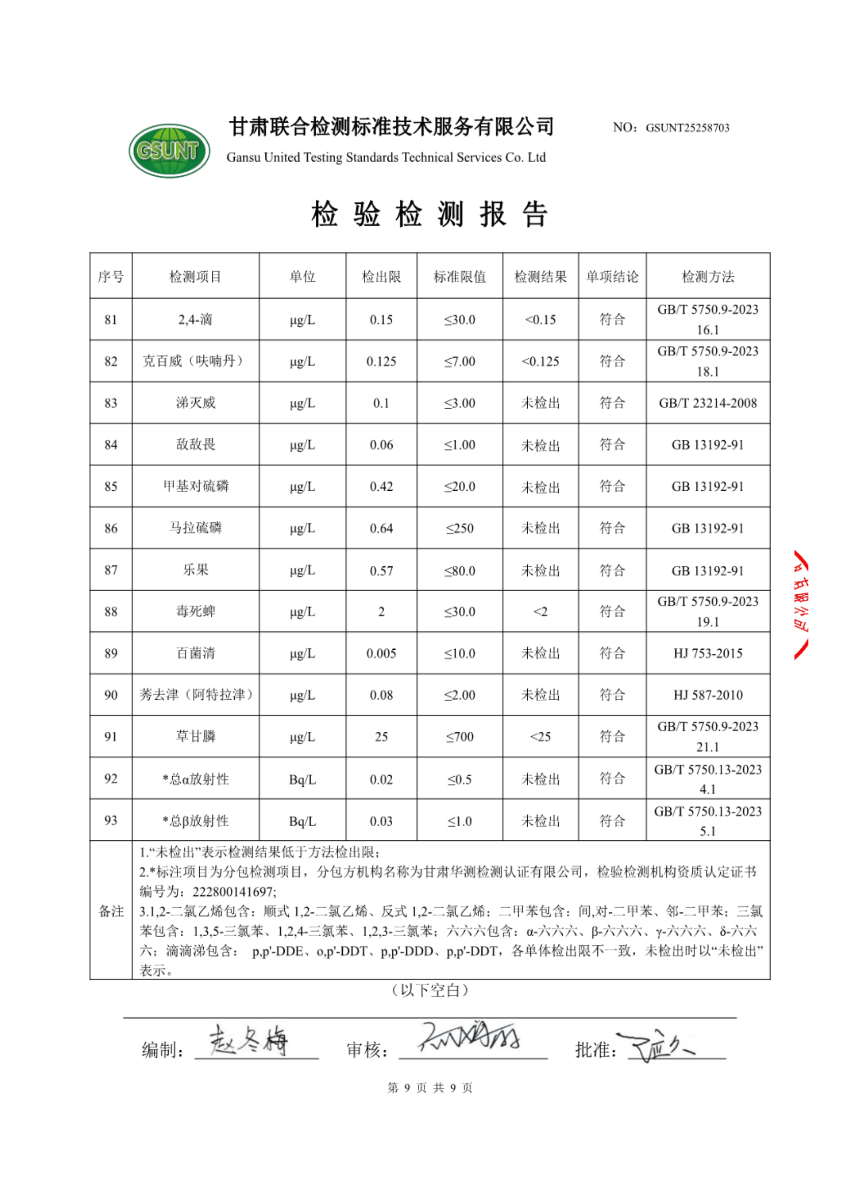 高台县城区饮用水2025年7月份水质(水源水)检测报告