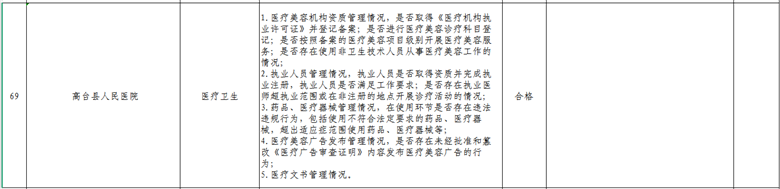 高台县卫生健康局2025年国家“双随机、一公开”随机抽查抽检结果公示