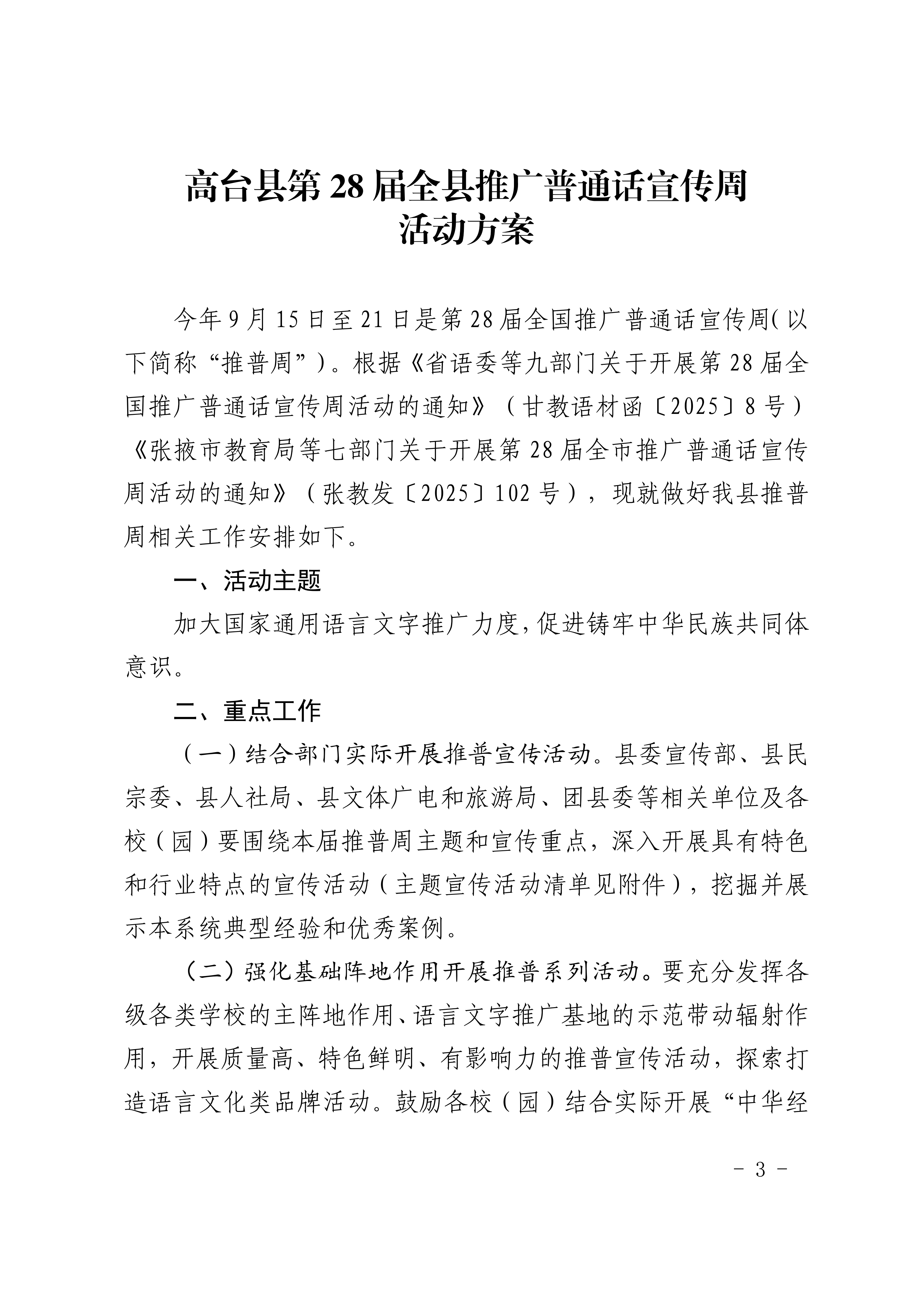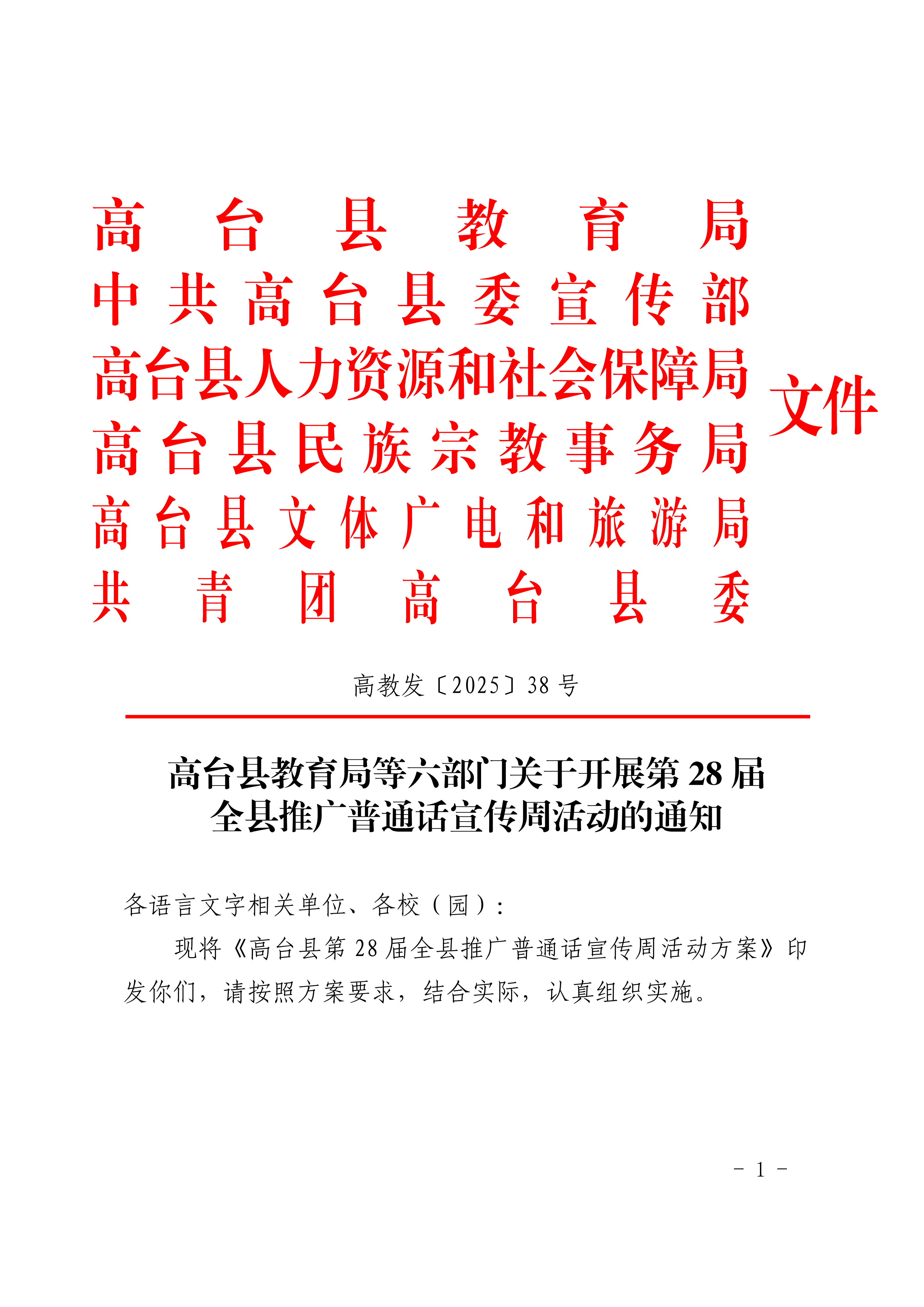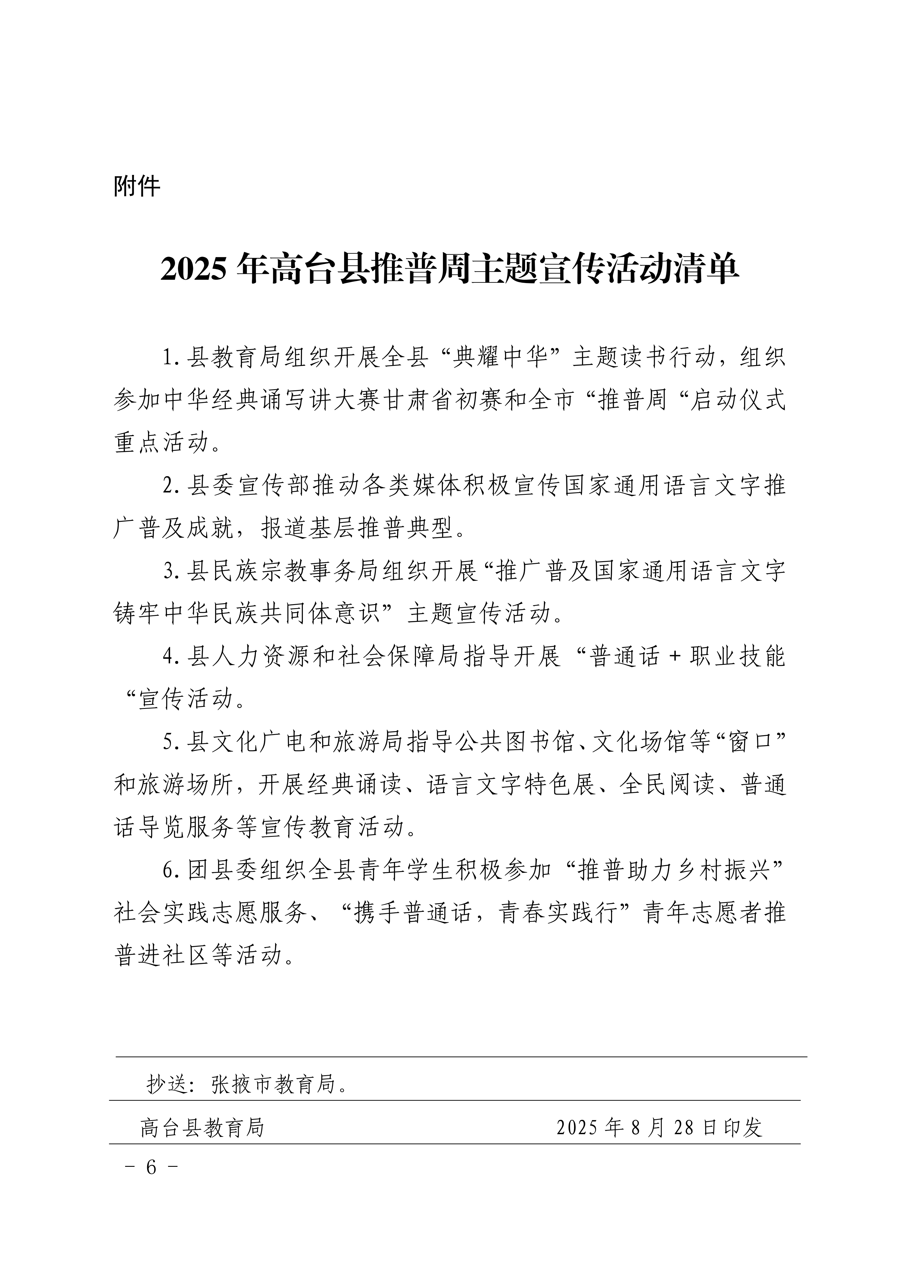 高台县教育局等六部门关于开展第28届全县推广普通话宣传周活动的通知