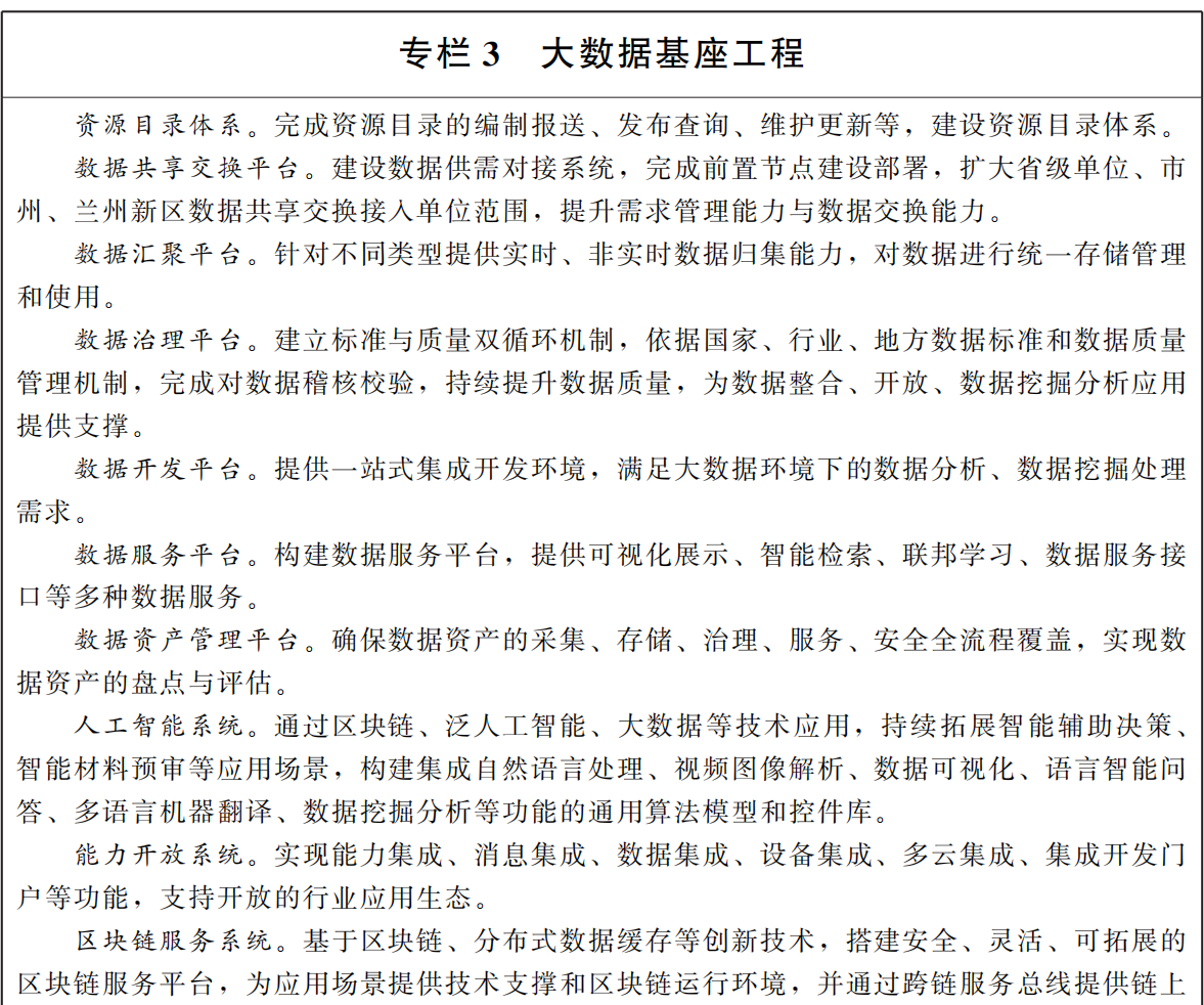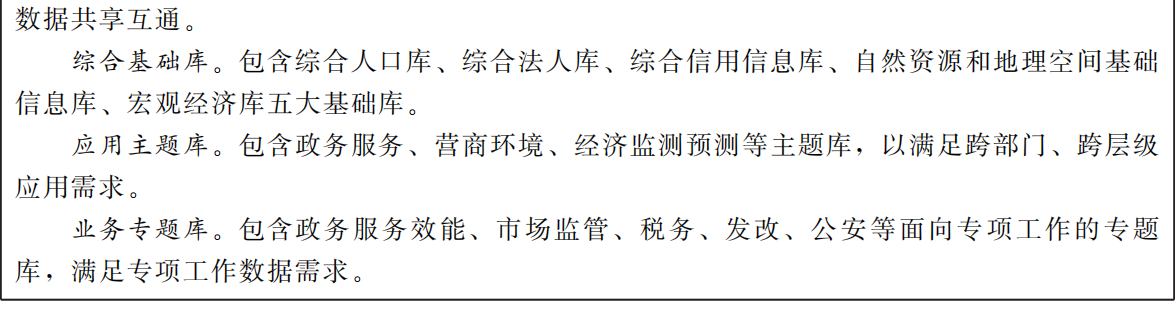 3.建设一体化大数据基座。运用全省一体化大数据基座实现政务数据的归集和融合治理,形成全省统一的数据资产。加强数据开放共享,推进数据在政务服务、社会治理、宏观决策等领域充分应用,提升数据要素价值。